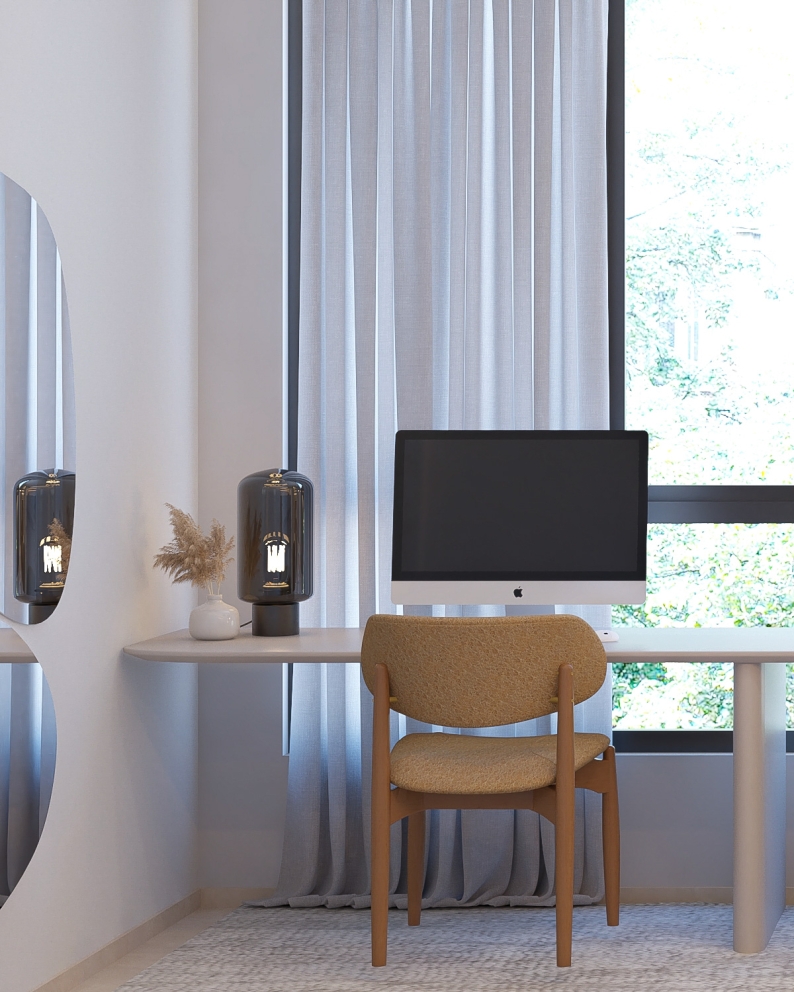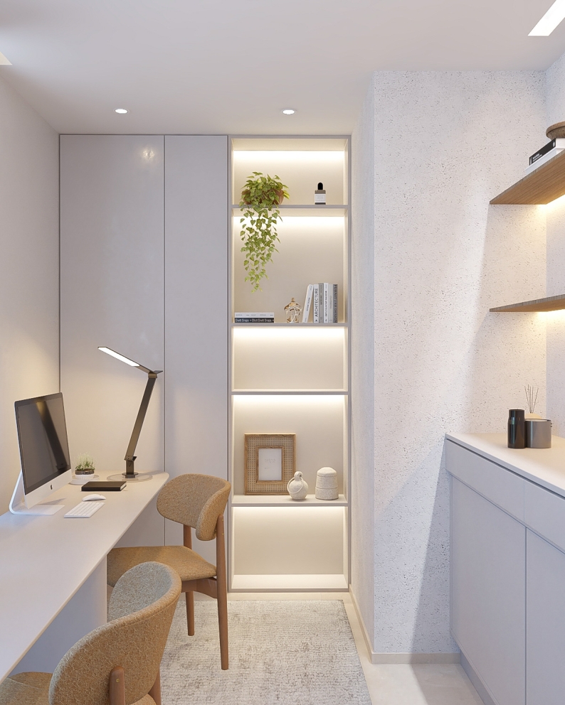 Este projeto de escritório foi desenvolvido com o propósito de criar um ambiente de trabalho funcional, elegante e inspirador, onde a iluminação natural é protagonista. A ampla entrada de luz proporciona bem-estar ao longo do dia, favorecendo a produtividade e criando uma atmosfera leve e acolhedora.